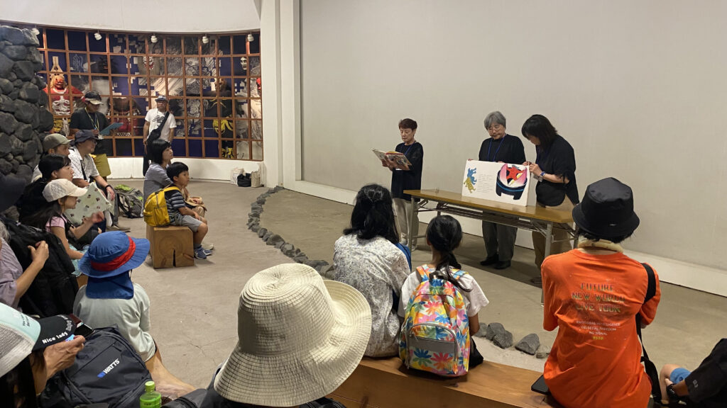鬼ヶ島にちなんだ”桃太郎”の読み聞かせに、こどもも大人も引き込まれていました!