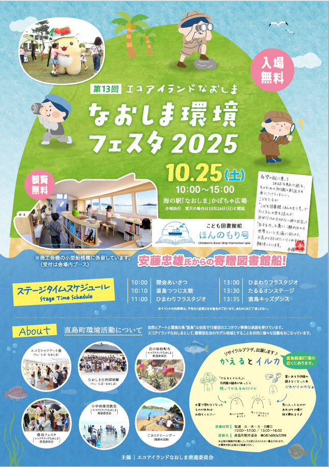 - イベント名 「なおしま環境フェスタ2025」 https://www.town.naoshima.lg.jp/oshirase/environment/2025/20251025.html