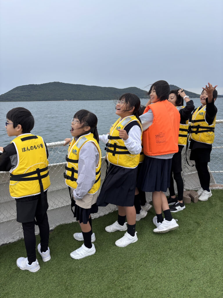 屋上デッキに上がって、追いかけてくるカモメを観察したり、めおんに手を振ったり、歌を歌ったりと、みんな大興奮!