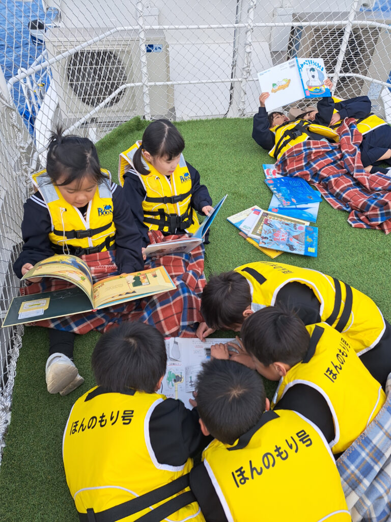 中にはワクワクを抑えきれない様子で、お友達と一緒に歌を歌っている光景も見られました。展望デッキでは、絵本を読んだり、寝っ転がったりして、みんな自由に楽しんでくれていました◎
