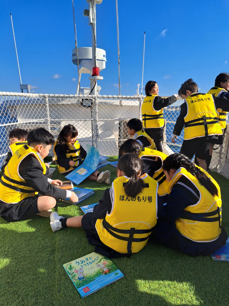 11/19(水)の午前、ほんのもり号が丸亀港に寄港し、城北小学校1年生をお迎えしました。