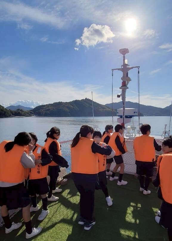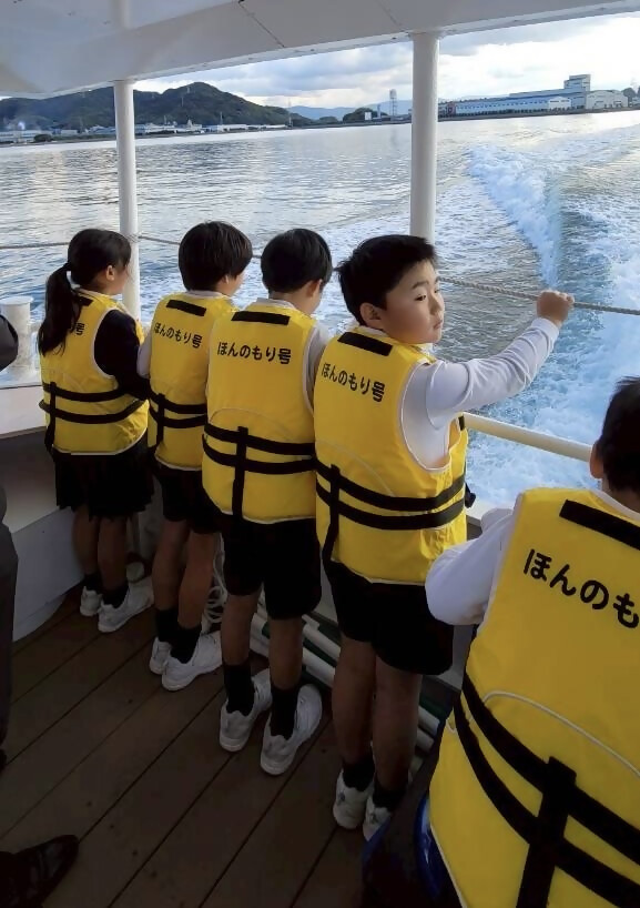 学年ごとに、宮ノ下港から約40分のほんのもり号クルーズへ出発!
