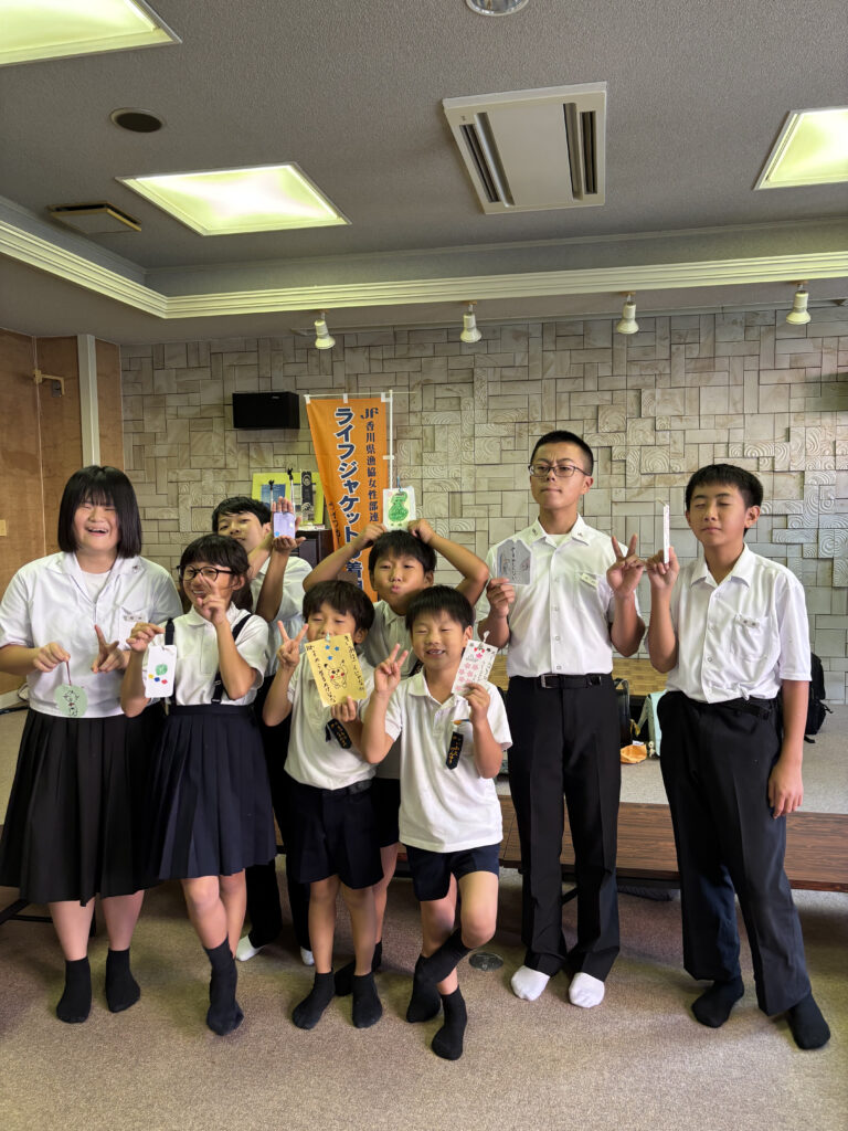 クルーズ後は、伊吹漁協へ移動して、”心に残った一文”しおり作りを行いました。