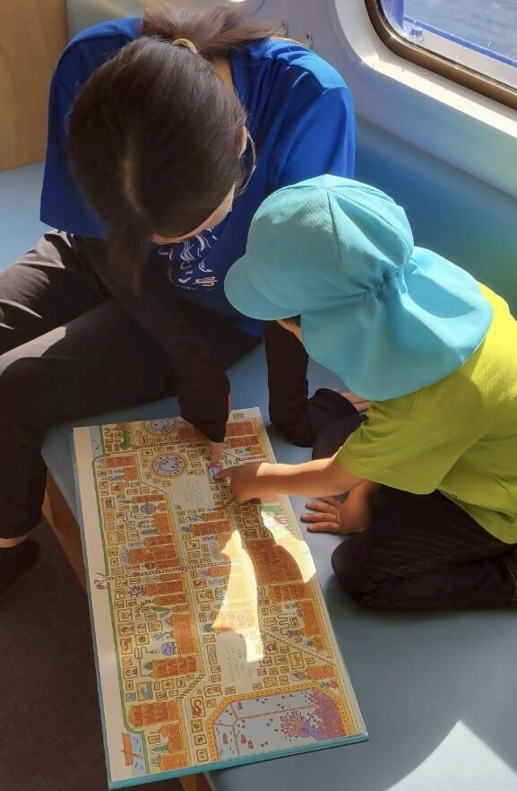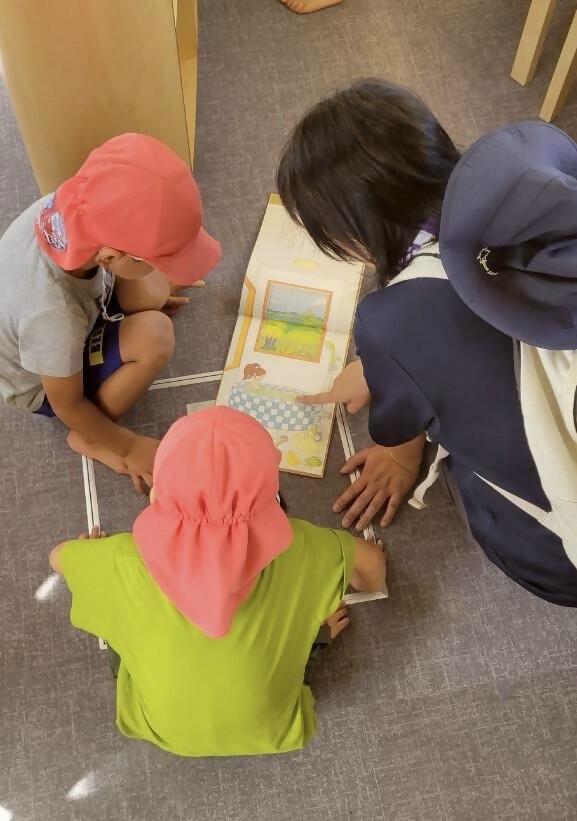 先生と絵本を読んだり、ぬり絵をしたり、ほんのもり号を目一杯楽しんでいる様子でした!