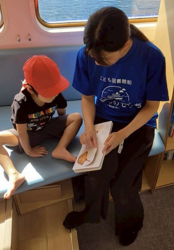 小中学校の後は、伊吹保育所が係留中のほんのもり号を観覧。