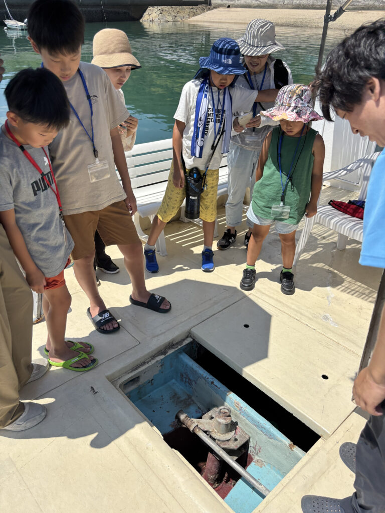 動くエンジンを見たり、実際に舵を回したりと、皆さん興味津々でした!