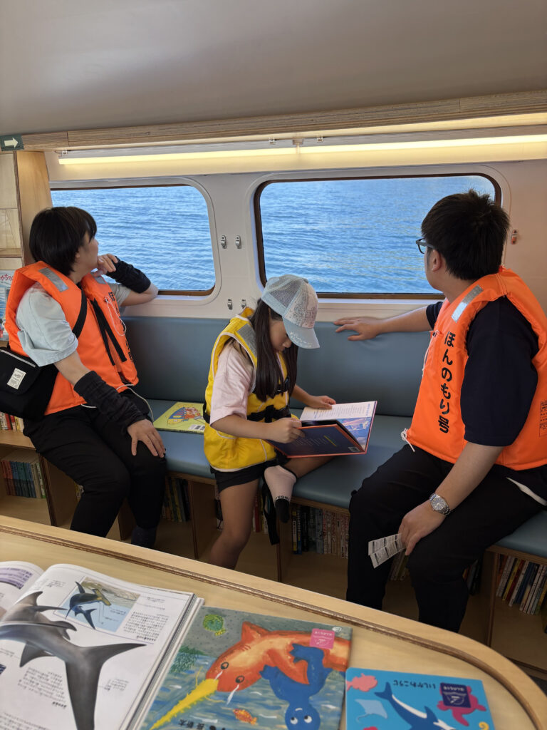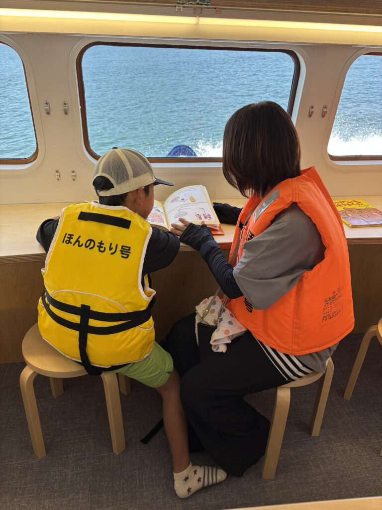 その後は、ほんのもり号クルーズとワークショップを行いました。