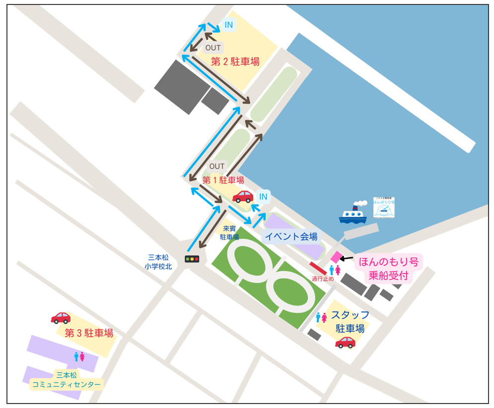 当日イベントにご参加の方は、臨時駐車場(第1駐車場・第2駐車場・第3駐車場)をご利用ください。