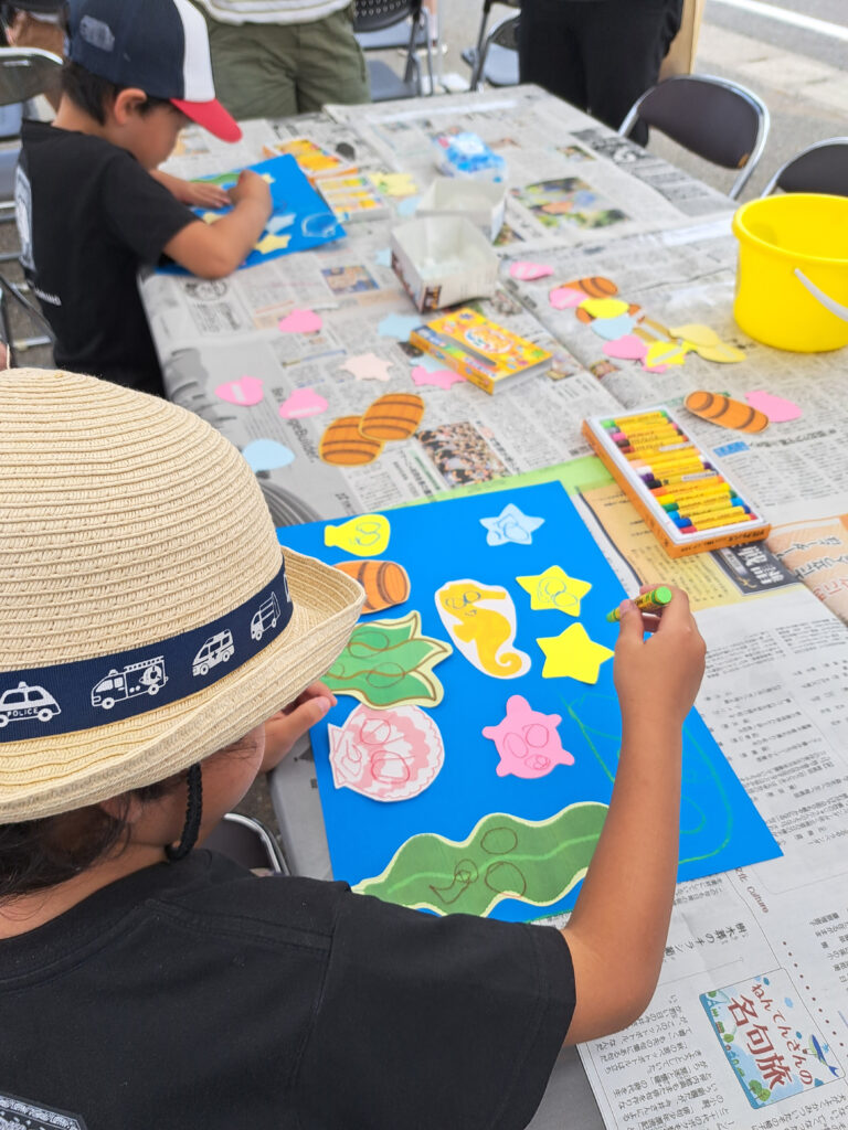 ワークショップエリアでは、オリジナル図書館バッグづくりや、「海のお部屋」をつくる工作も大盛況。こどもたちそれぞれのセンスが光っていました。