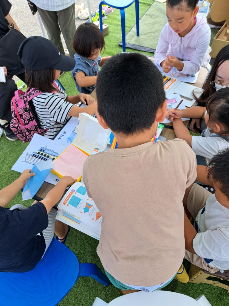 また、乗船までの時間を人工芝生のある読書スペースで過ごすご家族も多く見られて、本の読み聞かせをされたり、船のぬり絵や折り紙をしたり、ゆっくり本や工作を楽しまれている姿が印象的でした◎