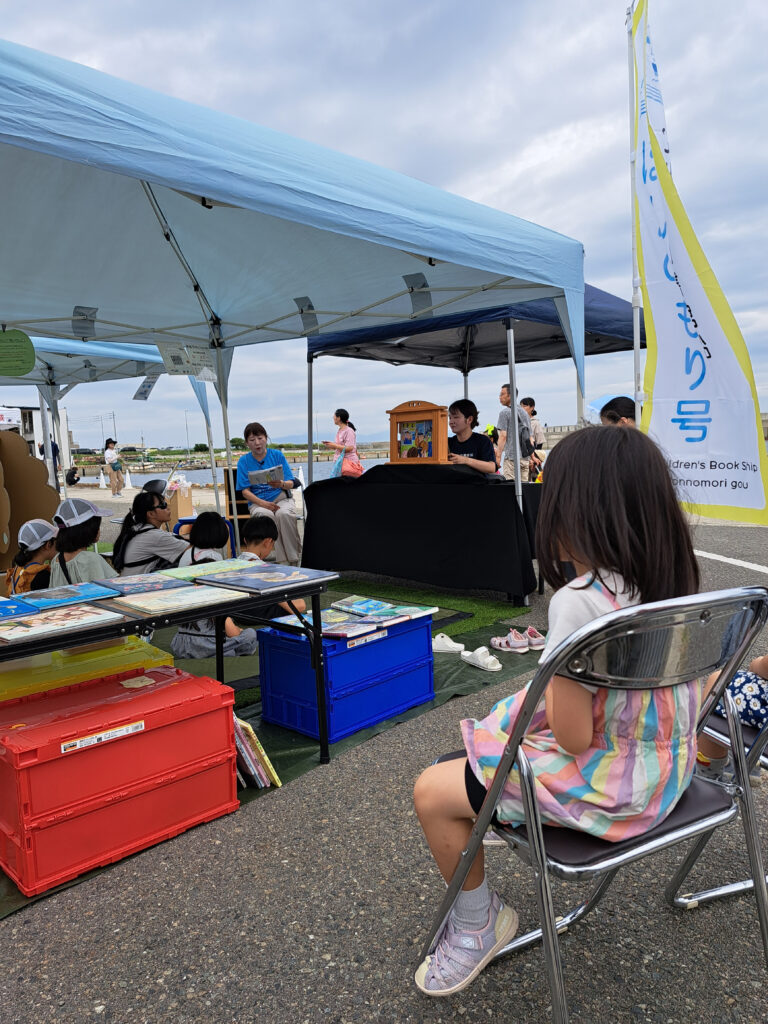 ほんのもり号が三本松港に寄港し、船内観覧や、紙芝居、子どもが楽しめるワークショップなどを行います。