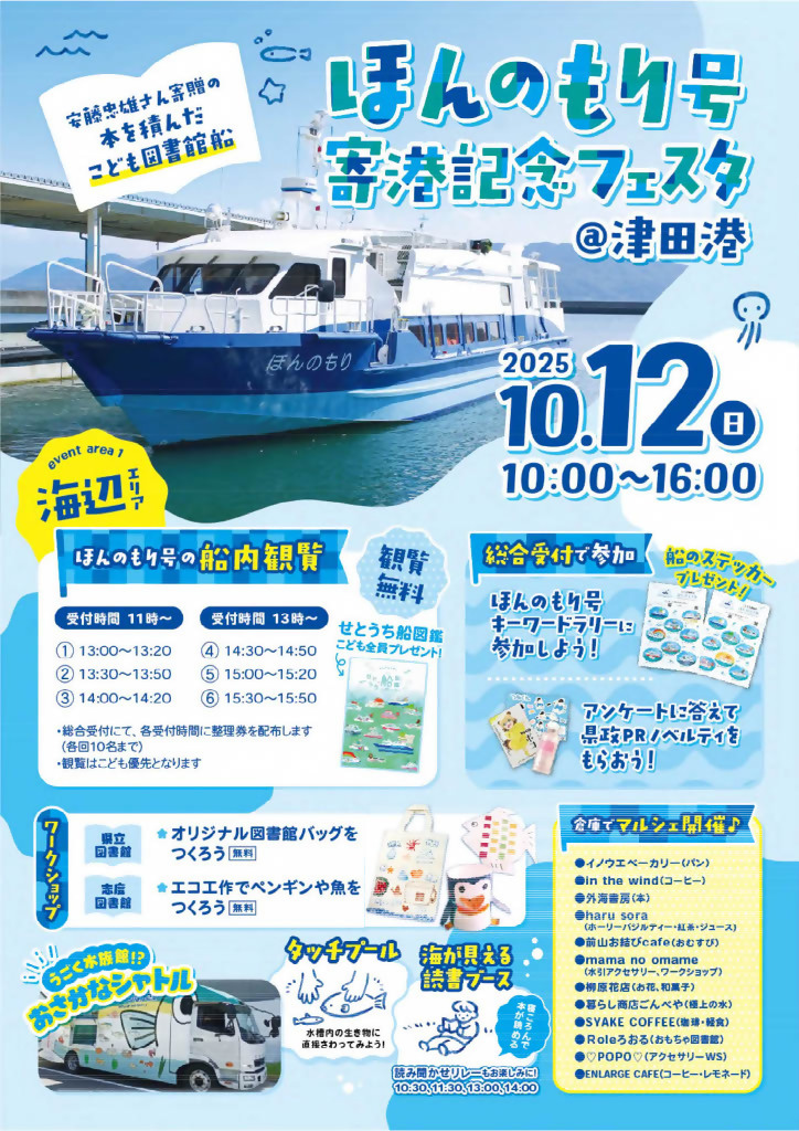 (一社)さぬき市津田地区まちづくり協議会と連携した「ほんのもり号寄港記念フェスタ」