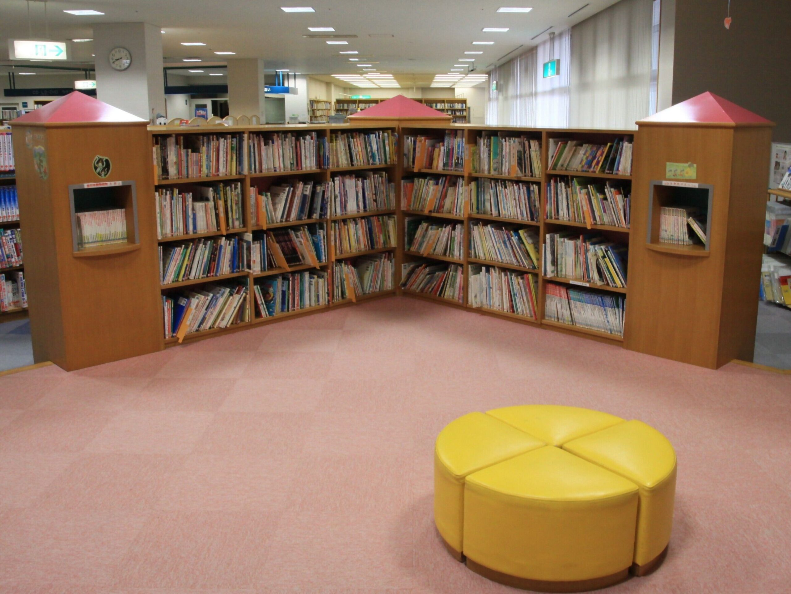 緑の屋根の茶色の建物の1階に情報資料室(メタ・ライブラリー)があります。 小さい子供用のいす・机があったり、足を伸ばしてゆっくりできる絵本コーナーもあるよ。 赤ちゃん向け、幼児向けのおはなし会をしています。 |